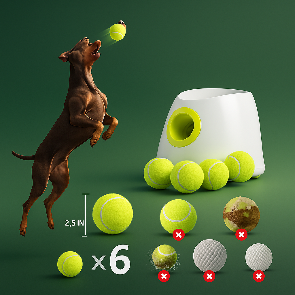 Answer 1: The launcher is designed to work with standard 2.5-inch tennis balls, and it comes with six durable, specially designed balls included for your convenience.